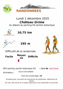 Liste des RANDONNEES DU VENDREDI 2022/2023