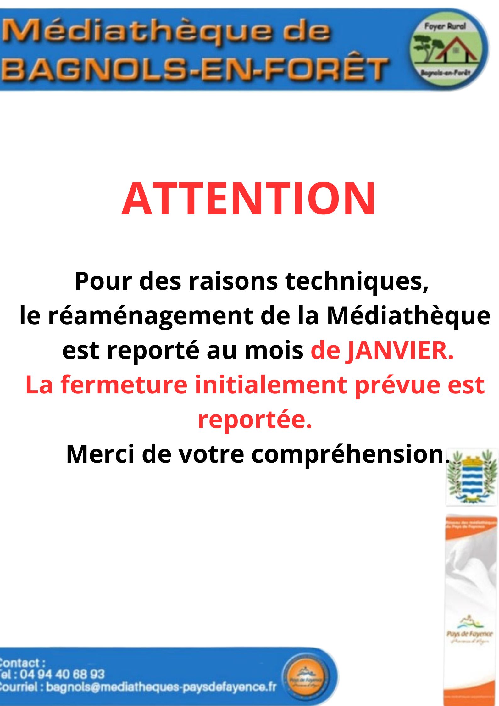 Ouverture de la médiathèque : Lundi de 15h à 18 h mercredi et samedi de 9 h à 12 h Les responsables de la médiathèque sont Graziella Pesce et Nicole Despierre